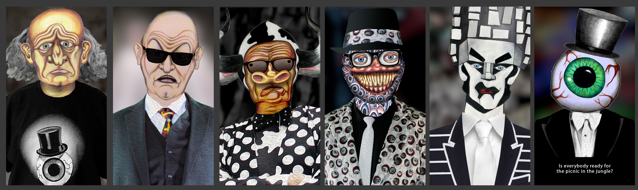 Digital host avatars of The Singing Resident for The Residents 50th Anniversary secret show, image posted to Facebook by John Sanborn, January 12th 2023