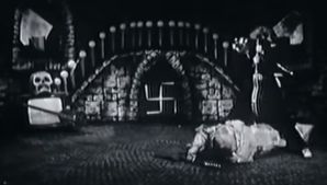 The set from The Third Reich 'n Roll short film, aside from neatly recycling set and costume elements from the then-recently abandoned feature film Vileness Fats, later ended up inspiring the creation of Mr. Skull, a recurring element of the group's eyeball costumes from 1986 onwards.