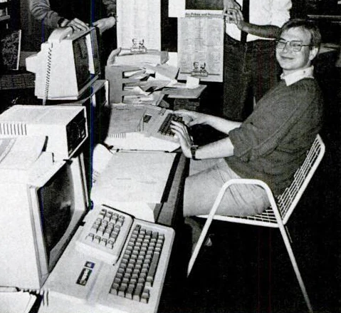 Hardy Fox at an Apple II computer, cropped from the