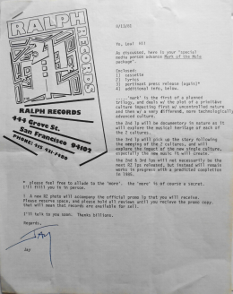 Ralph Records press release, August 1st 1981