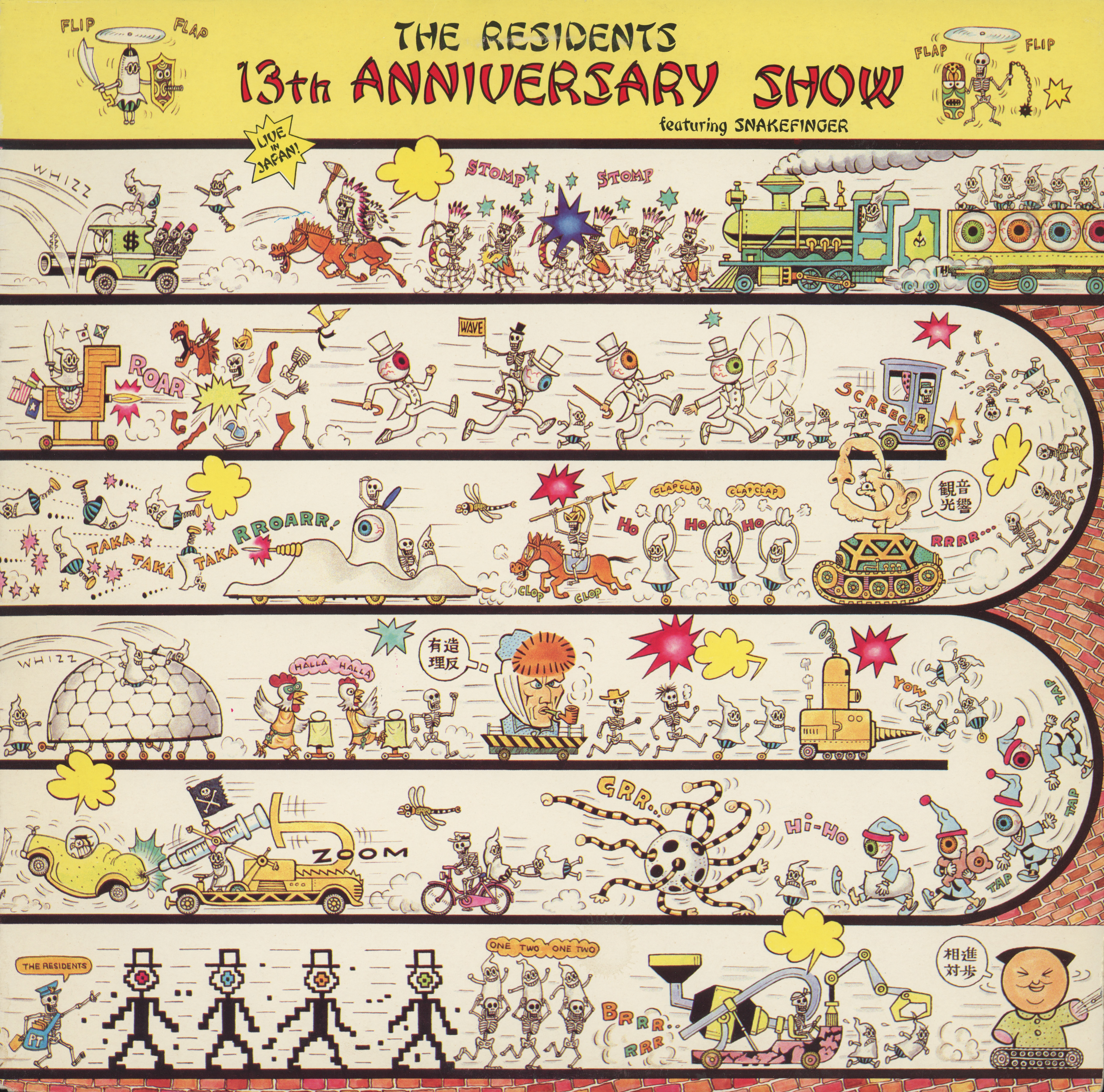 This album was mixed at Different Fur Studios and was released in Japan by Wave Records in February of 1986. The LP would cut down the hour long show into 13 tracks, a specific request of The Residents. In order to get the 13 number, several tracks had to be combined into one, most of which featured as unaccredited instrumentals. Following the Japanese release, the album was released on Cassette in Australia, on LP in the Netherlands by Torso, in Greece by Virgin, and finally, in the US by Ralph Records. Following the Ralph Records release, the Australian LP was released. All released but the Japanese one were titled The 13th Anniversary Show Live In Japan